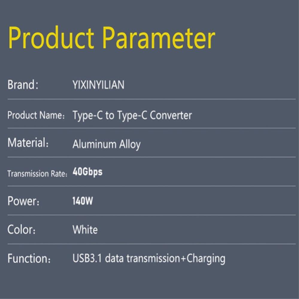 140W USB 3.1 USB-C Hane till USB-C Hona Adapter 8K 40Gbps Vit