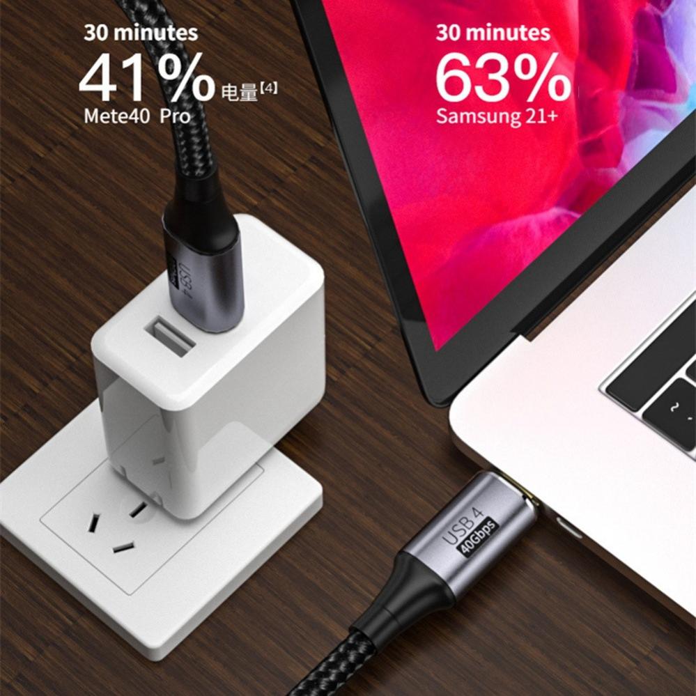 USB4-kabel som ger 100W laddningshastighet och 40 Gbps överföringshastighet via USB4 värd och enhet.