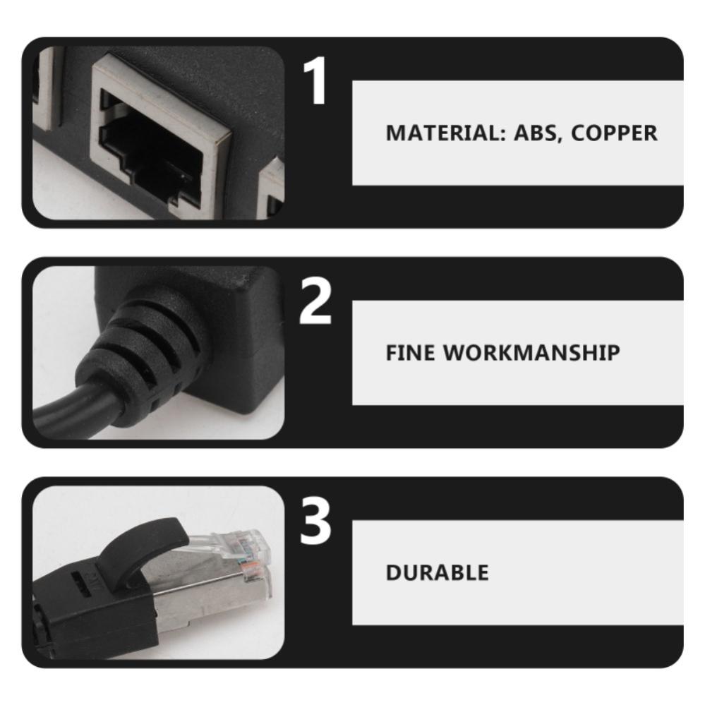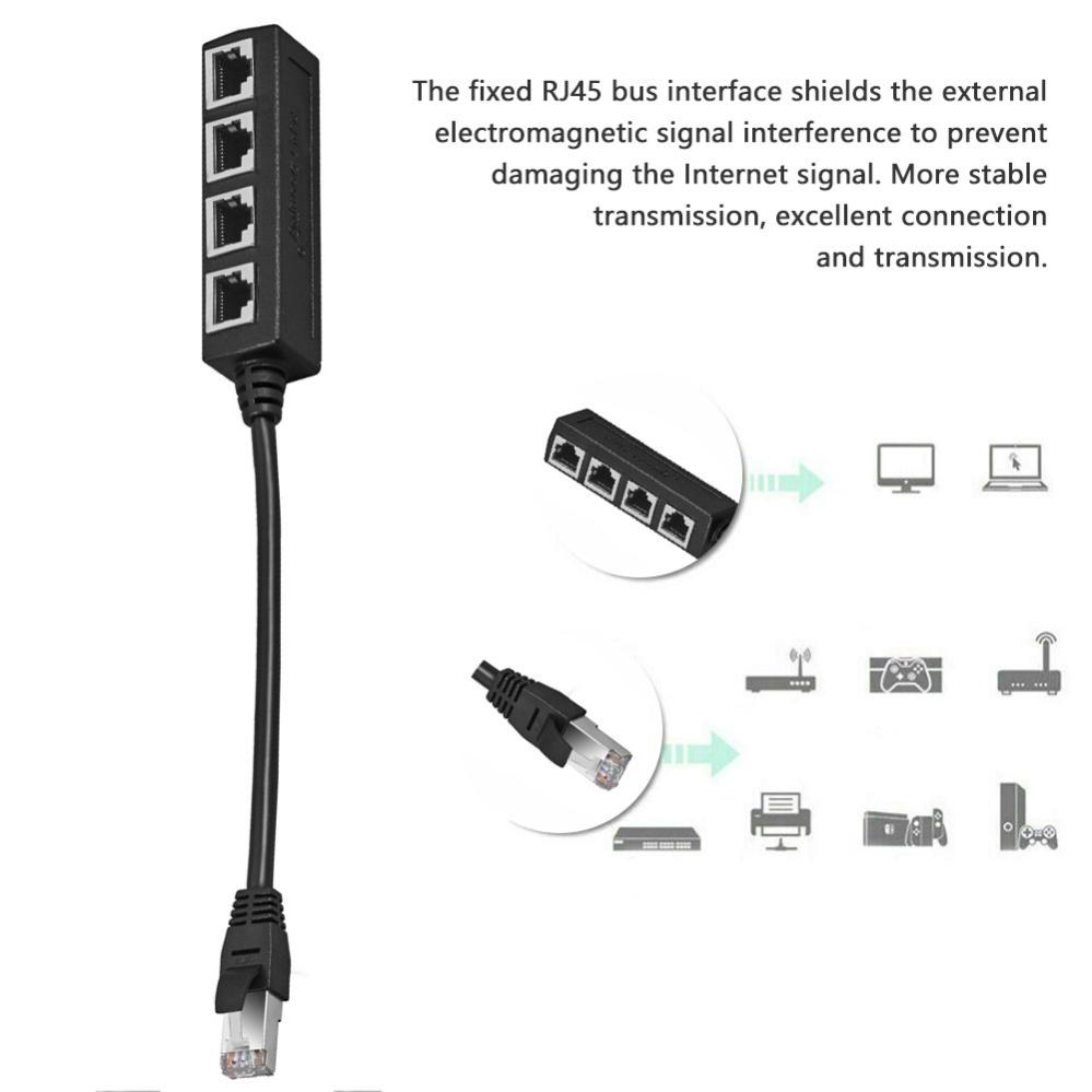 RJ45 1 till 4 nätverksadapter är en praktisk splitter som gör det möjligt att förlänga din LAN-anslutning och undvika att behöva dra kablar fram och tillbaka, vilket minskar risken för kabelbrott. Denna splitter är tillverkad av högkvalitativa material och är idealisk för användning med ADSL, routrar, digitalboxar, datorer och andra nätverksenheter. Den fungerar med Cat5, Cat5e, Cat6 och Cat7-kablar.