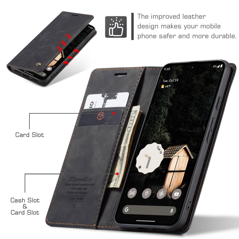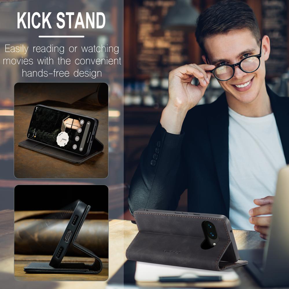 CASEME Google Pixel 10a Fodral Flip Retro Läder Svart
