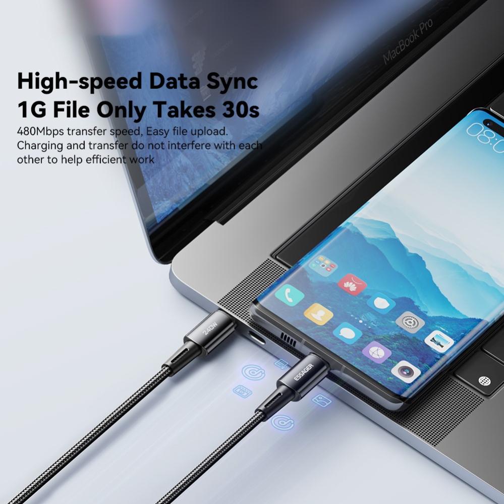ESSAGER 1m 240W PD USB-C - USB-C Nylonkabel Svart