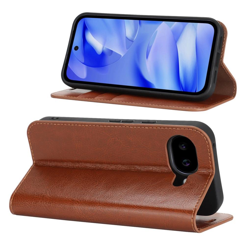 Google Pixel 10a Fodral Flip Äkta Läder Brun