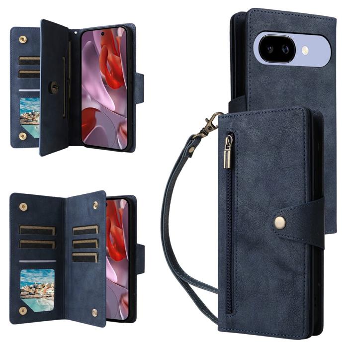 Google Pixel 10a Fodral Med Kortfack Läder Blå