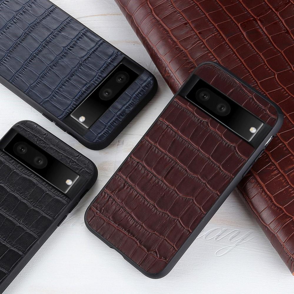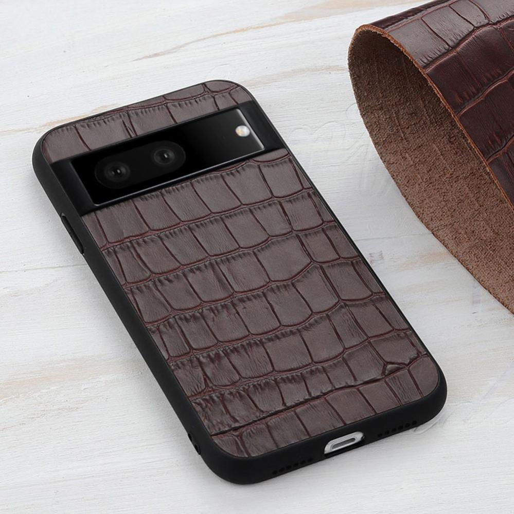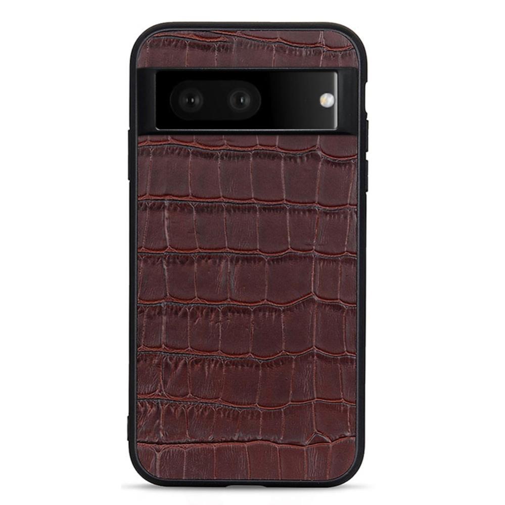 Google Pixel 7 Skal Äkta Läder Krokodil Textur Brun