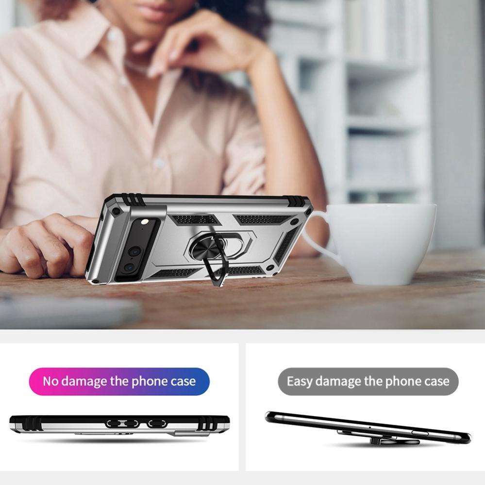 Google Pixel 7 Skal Shockproof Hybrid Ring Armor Silver