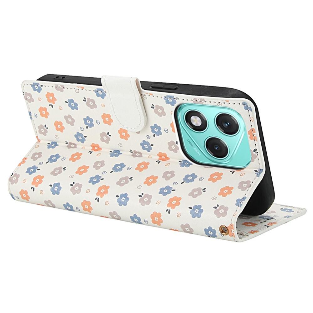 Honor 400 Lite Fodral Rhombus Läder Blommor Vit