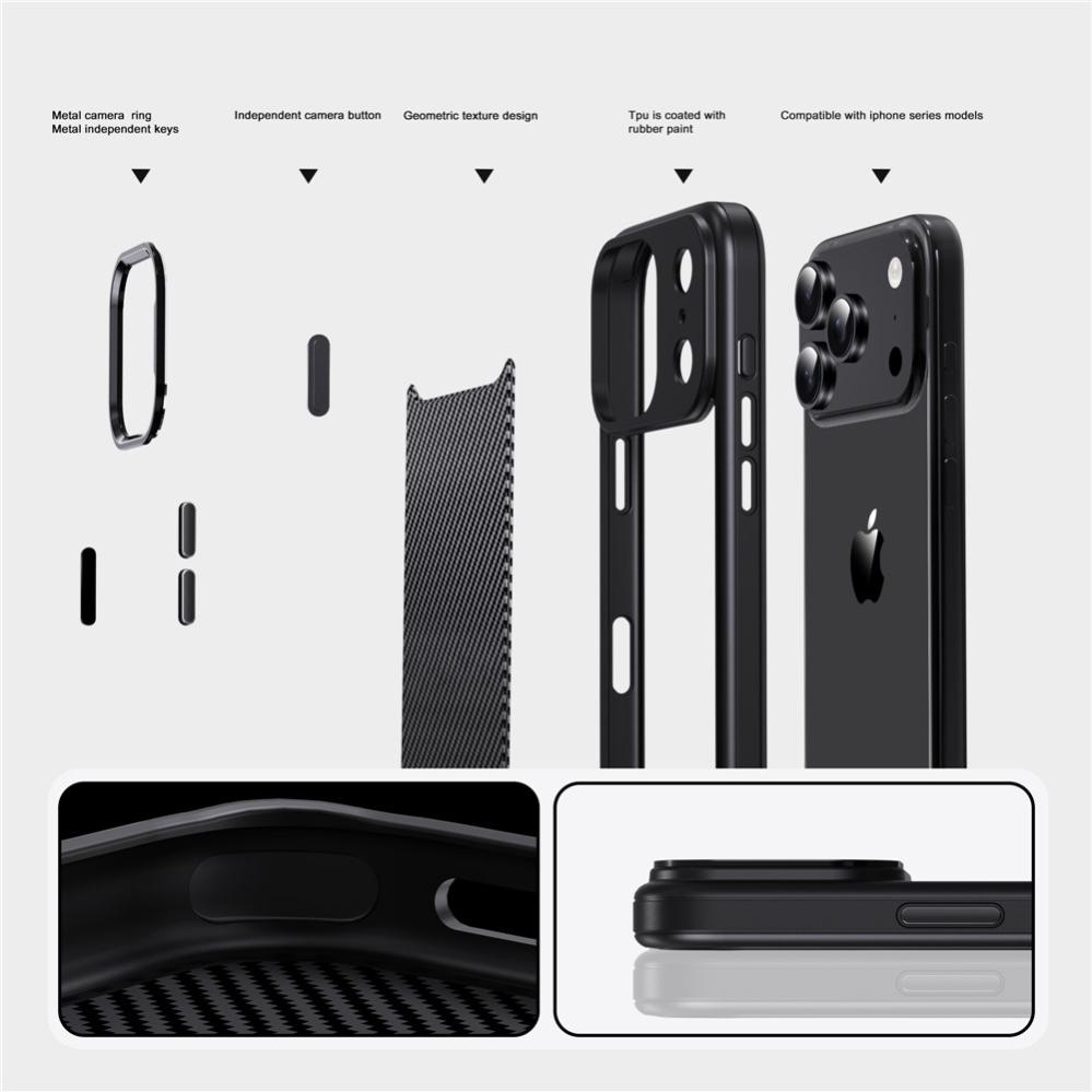 IPAKY iPhone 17 Pro Max Skal TPU Kolfiber Textur Svart