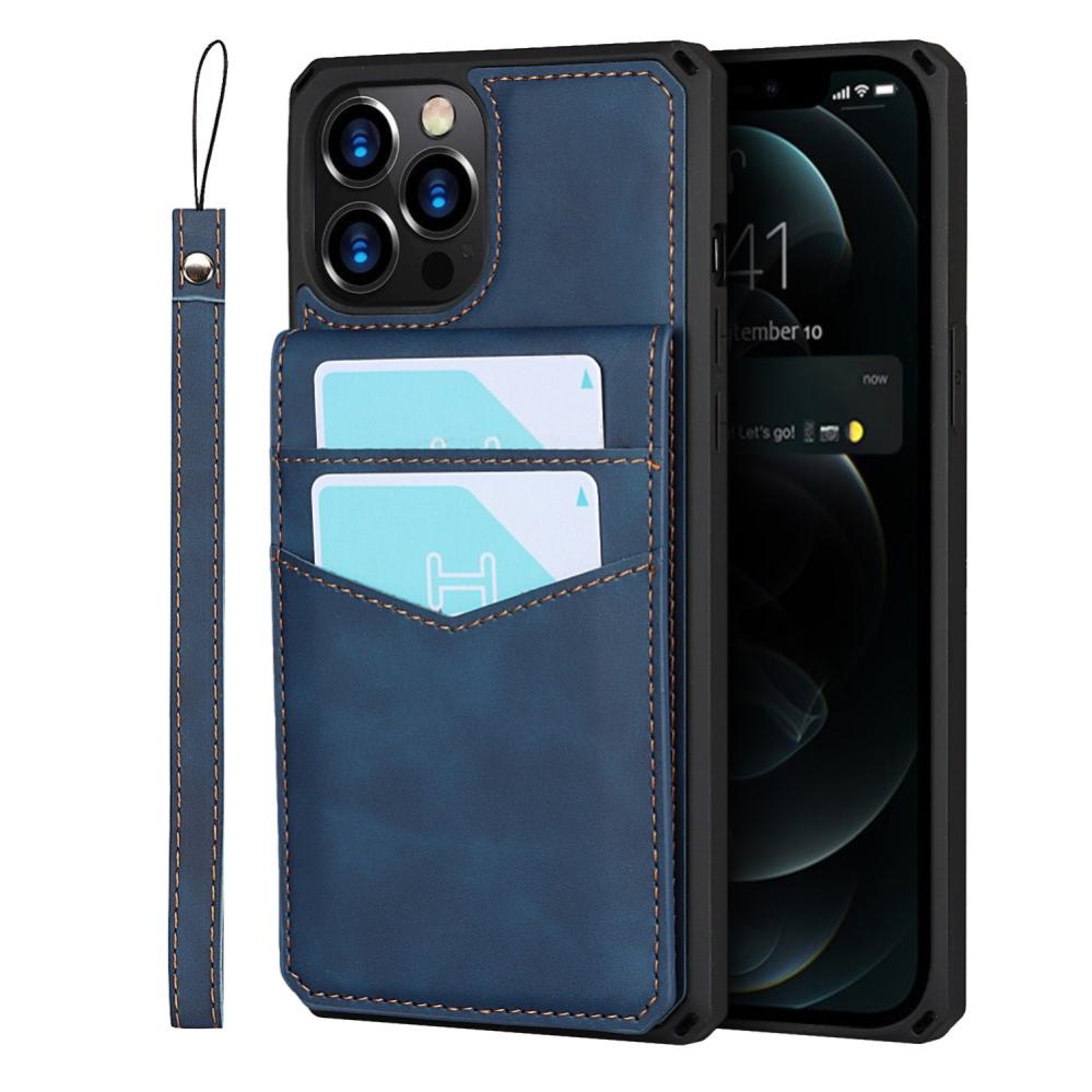 iPhone 12 Pro Max - Silkeslent Läder Skal Med Plånboksfunktion - Blå