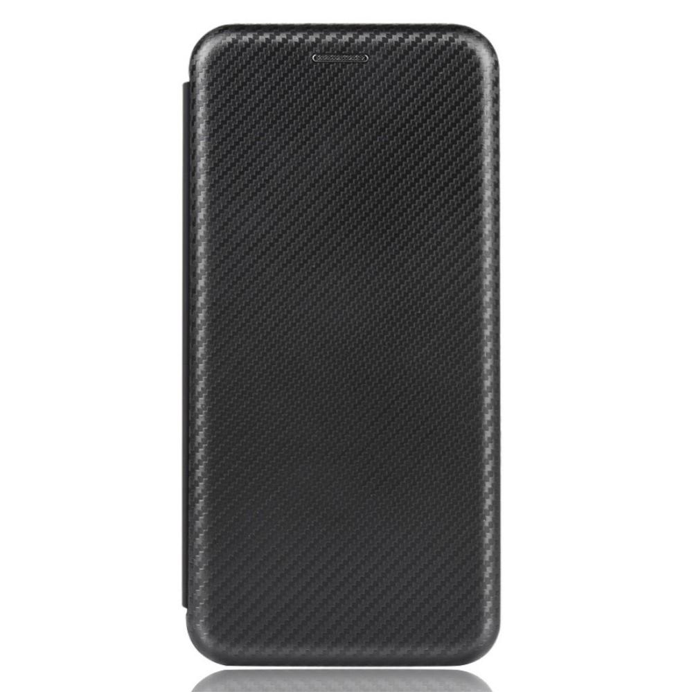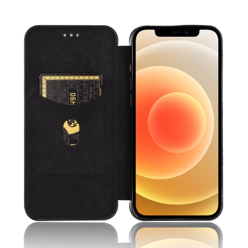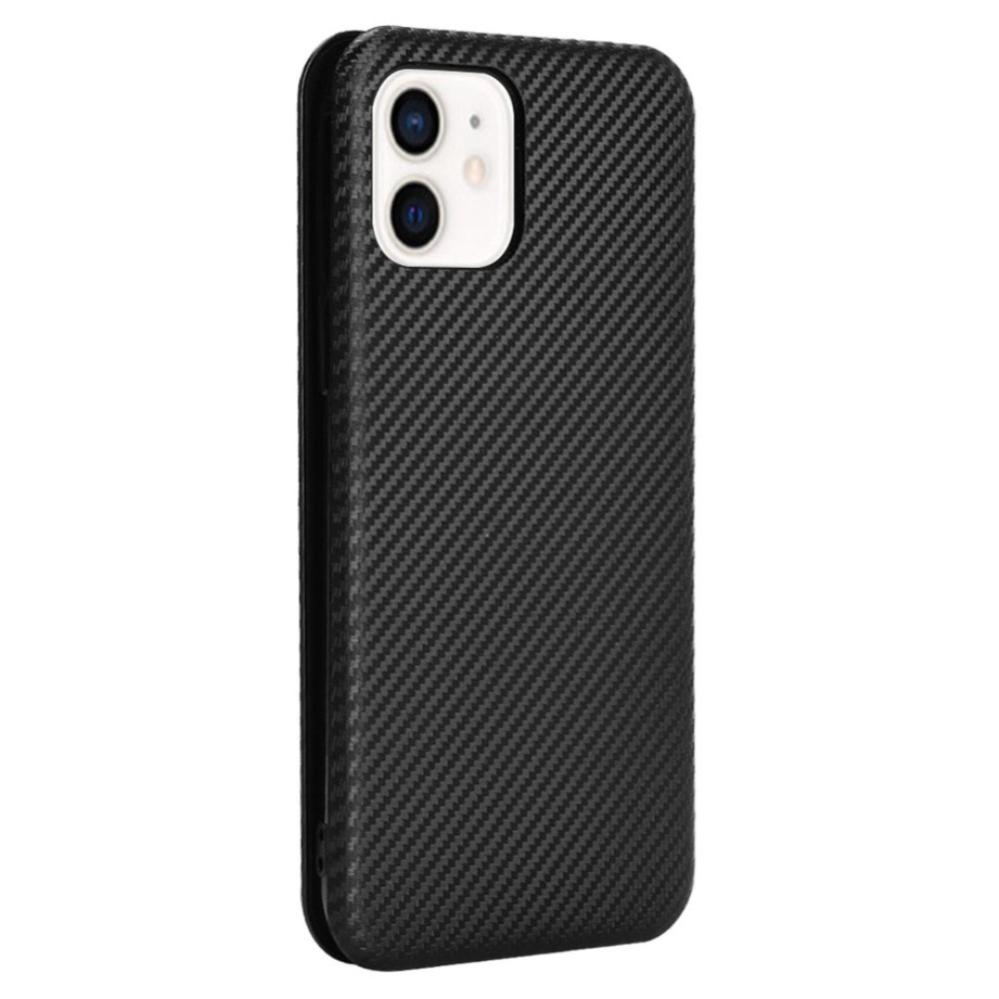 Läderfodral i kolfilber textur med kortplats för iPhone 13.