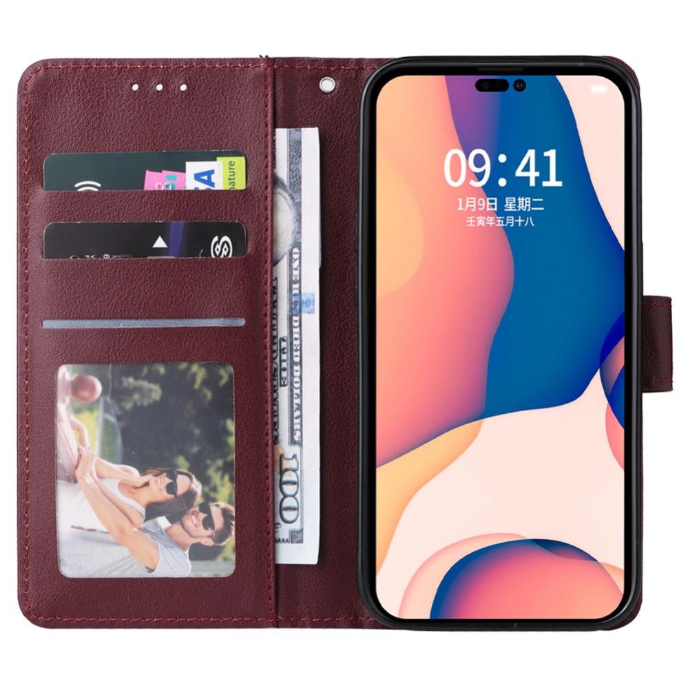 iPhone 15 Fodral Läder Med Snodd Vinröd