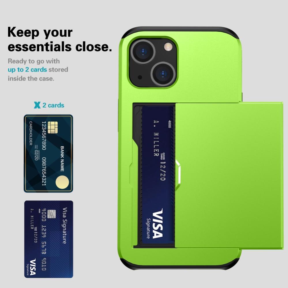 iPhone 15 Skal Hybrid Med Kortfack Grön