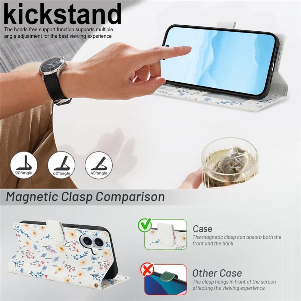 iPhone 16 Fodral Rhombus Läder Blommor Vit