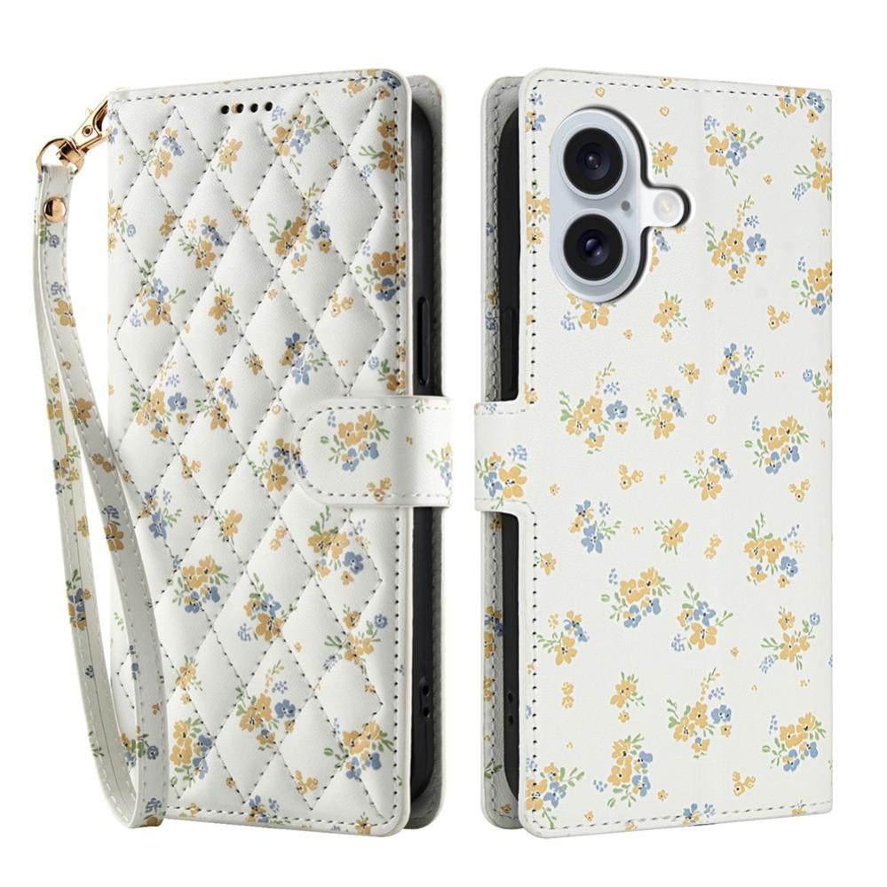iPhone 16 Fodral Rhombus Läder Blommor Vit