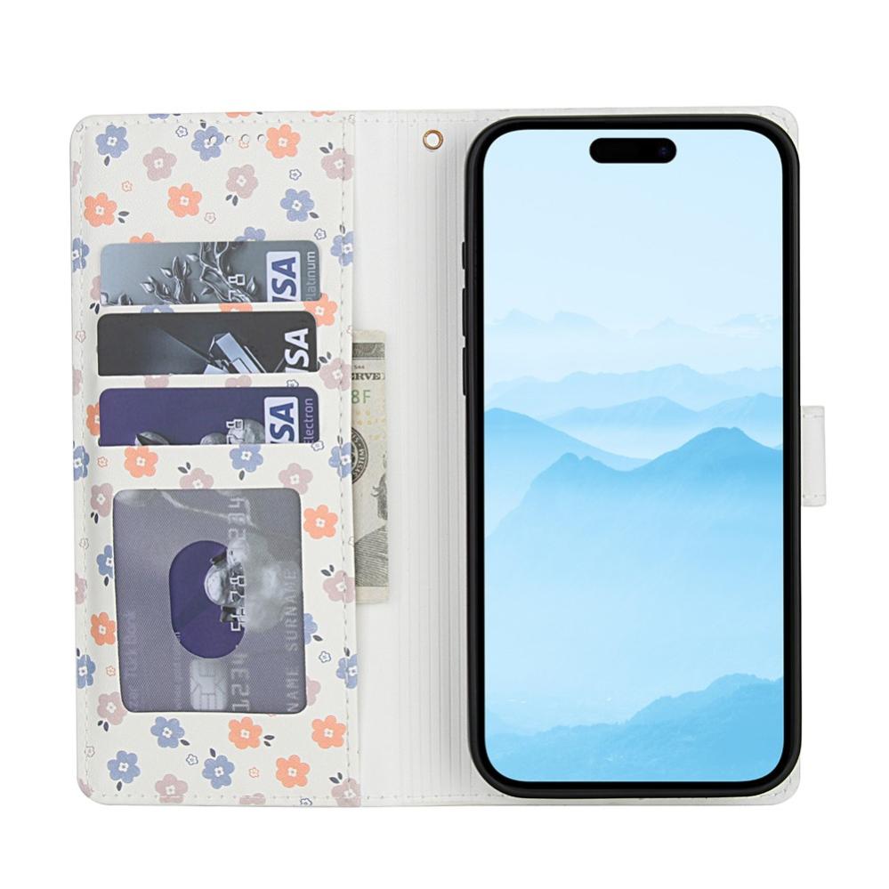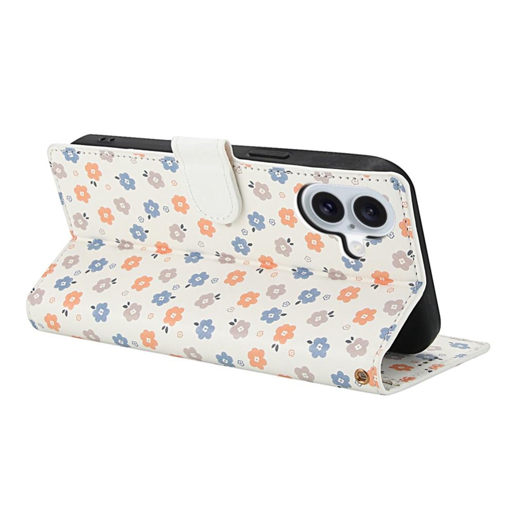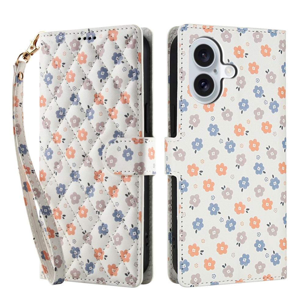 iPhone 16 Fodral Rhombus Läder Blommor Vit