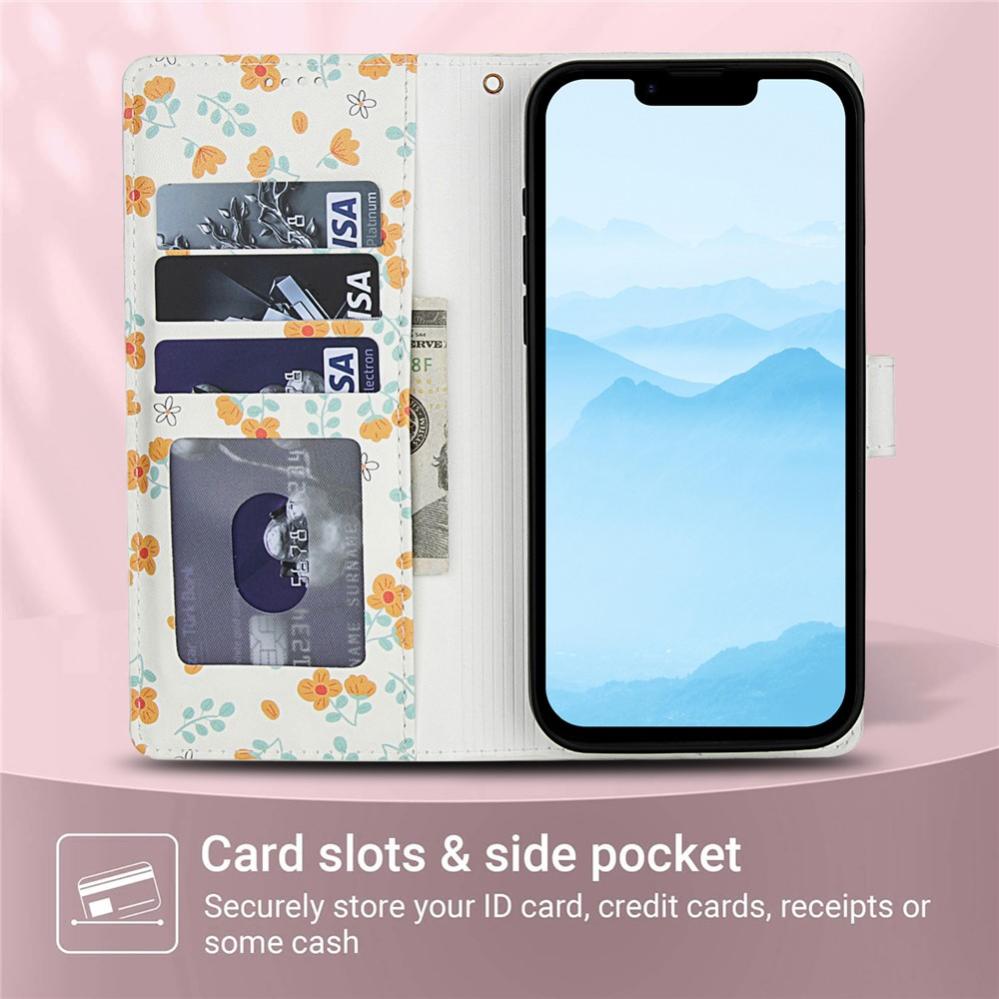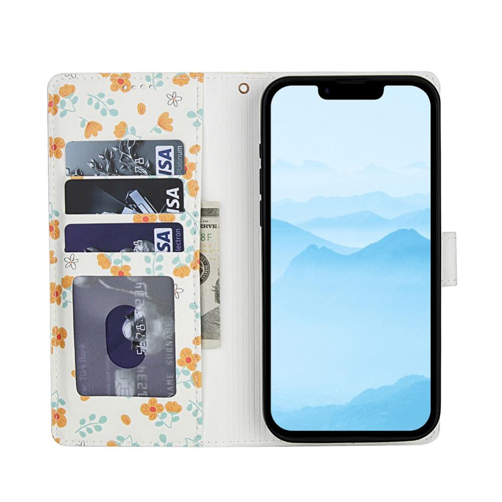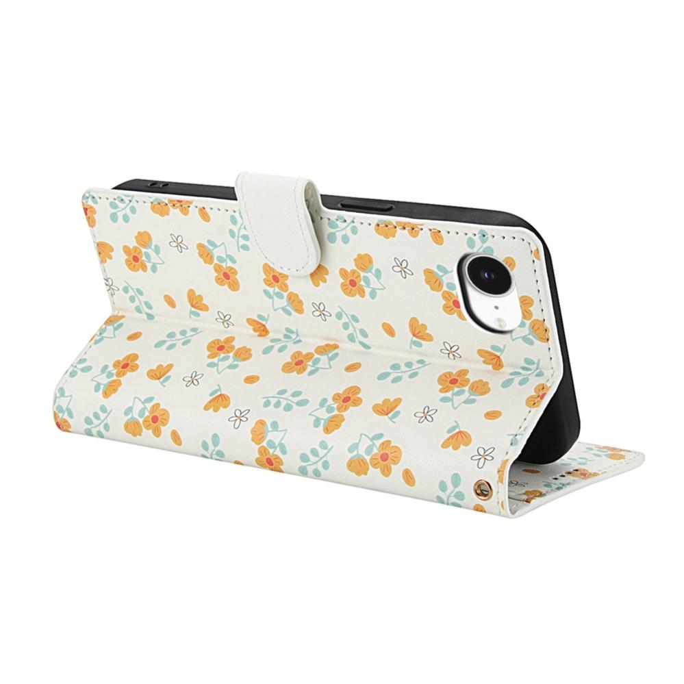iPhone 16e Fodral Rhombus Läder Blommor Vit