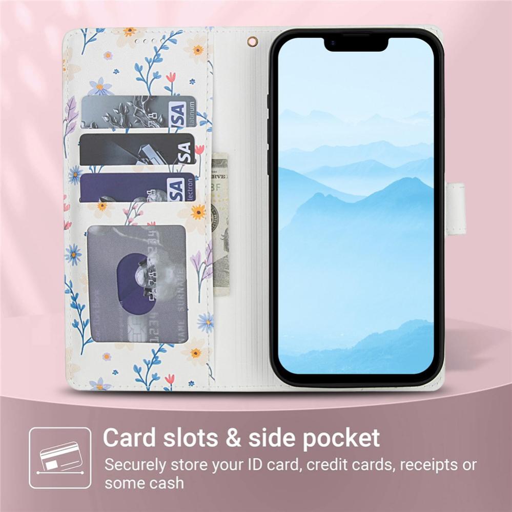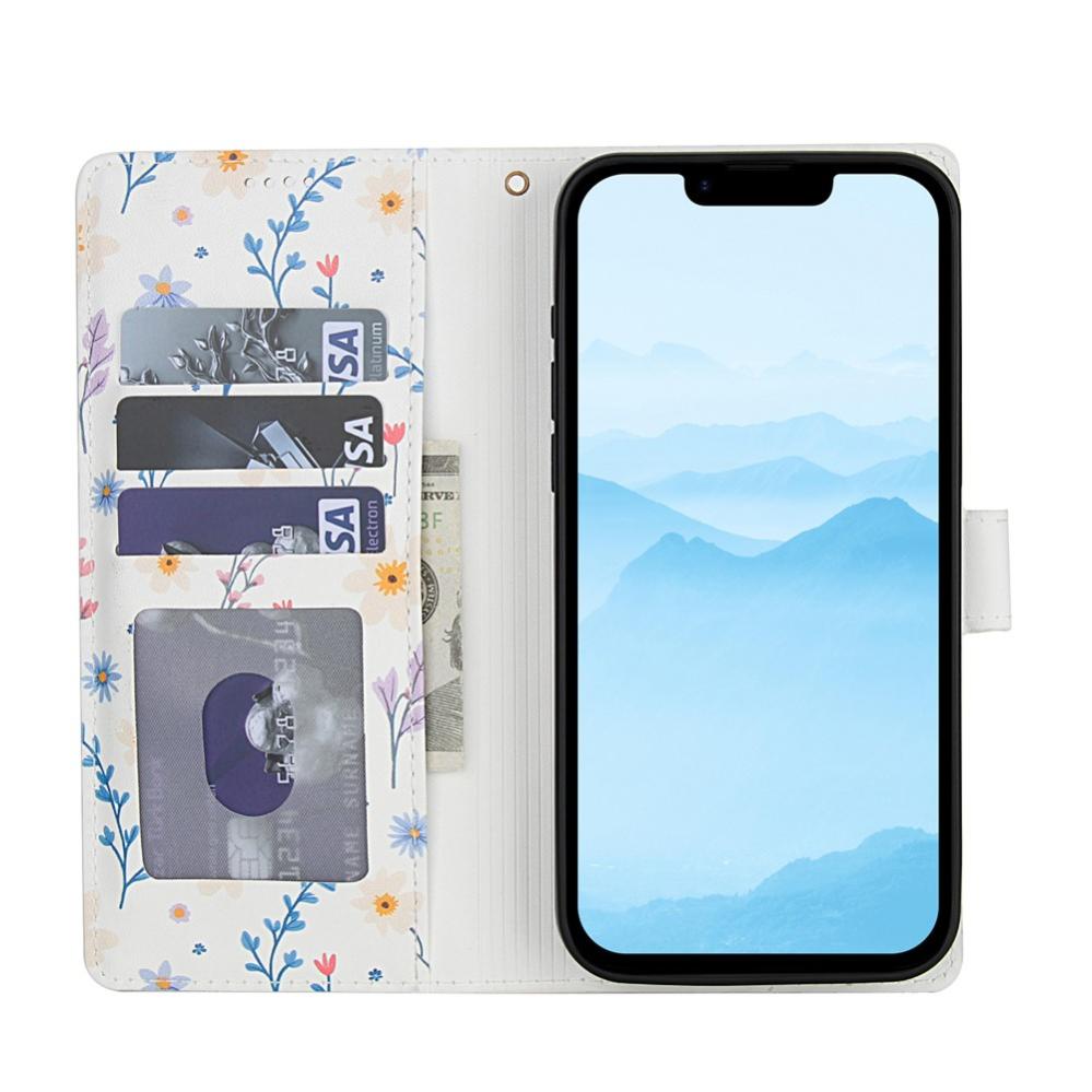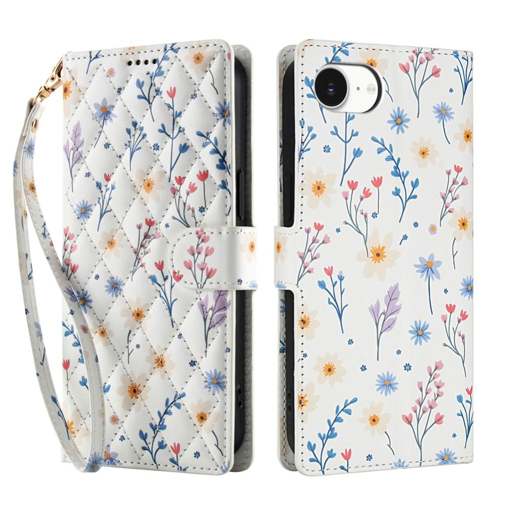 Handla denna produkt iPhone 16e Fodral Rhombus Läder Blommor Vit