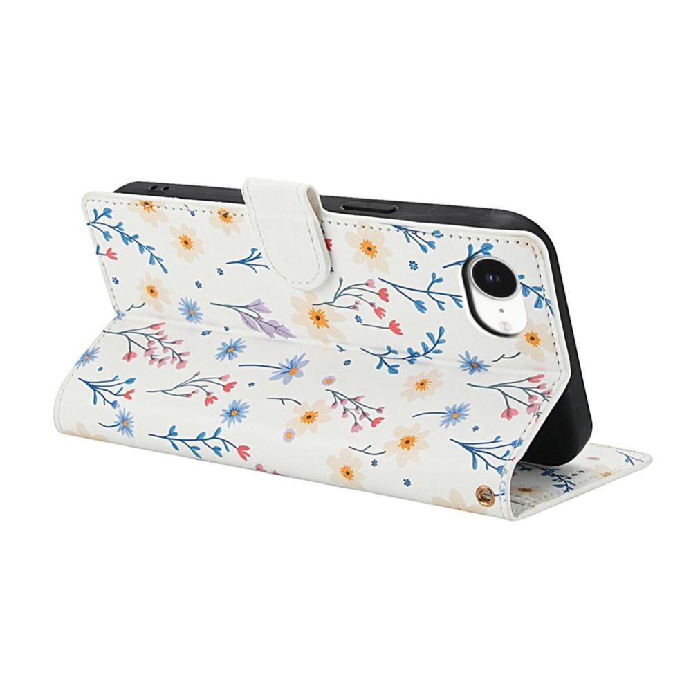 iPhone 16e Fodral Rhombus Läder Blommor Vit