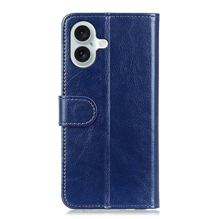 Detta blå plånboksfodral i ”crazy horse”-texturerat PU‑läder för iPhone 17 ger ett behagligt grepp och ett klassiskt utseende.