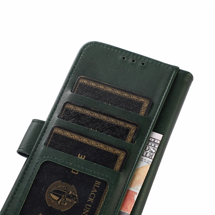 iPhone 17 Fodral Läder Grön är ett plånboksfodral anpassat för iPhone 17. Det kombinerar ett yttre i PU-läder med kohudstextur och ett flexibelt innerskal i TPU för tålig vardagsanvändning.