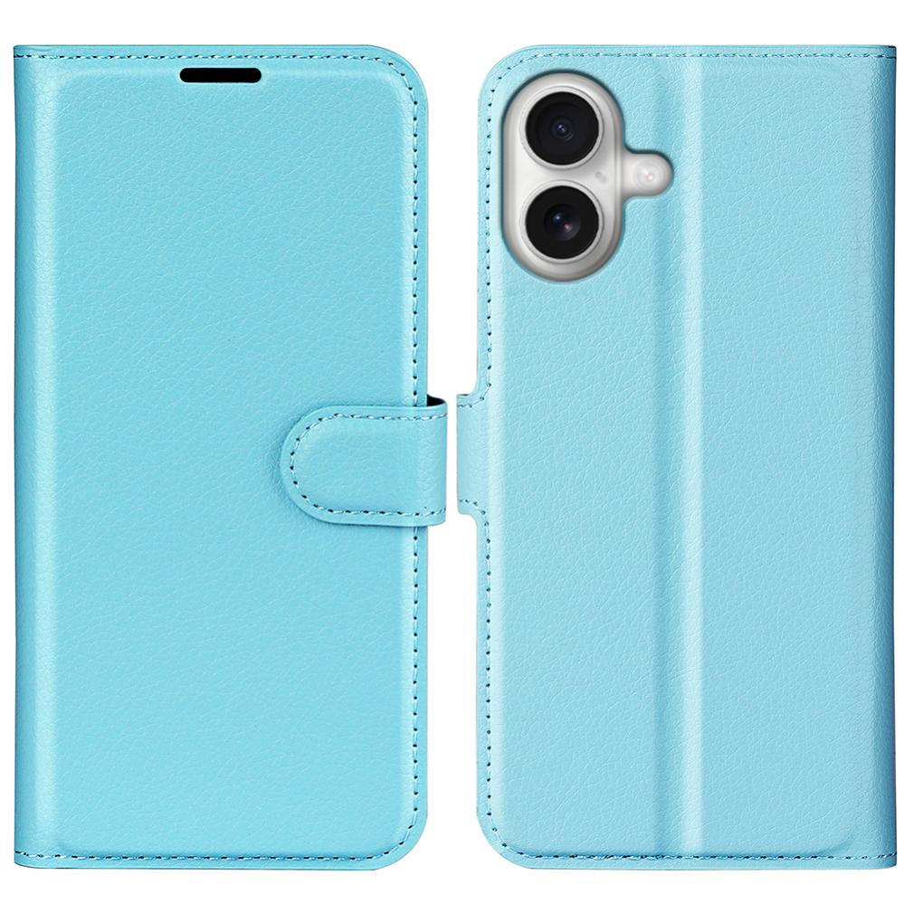 Detta plånboksfodral för iPhone 17 kombinerar litchi‑texturerat PU‑läder i blått med ett flexibelt TPU‑innerskal för säker vardagsanvändning. Materialen ger ett stadigt grepp och slitstarkt skydd mot repor och stötar.