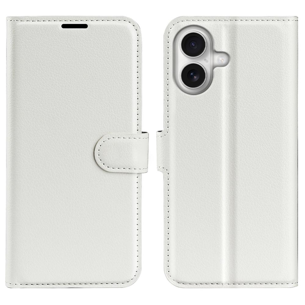 Detta fodral i PU-läder med litchi-textur för iPhone 17 kommer i vitt. Ett flexibelt TPU-innerskal håller telefonen på plats och ger stötdämpande skydd.