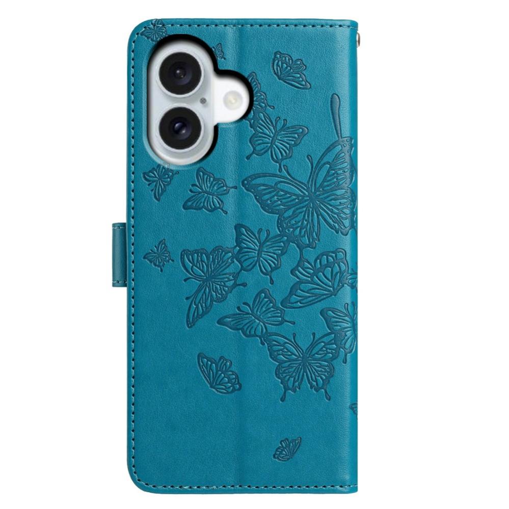 Ett blått plånboksfodral med präglat fjärilsmotiv för iPhone 17. Ger stil och vardagligt skydd i ett och samma tillbehör.