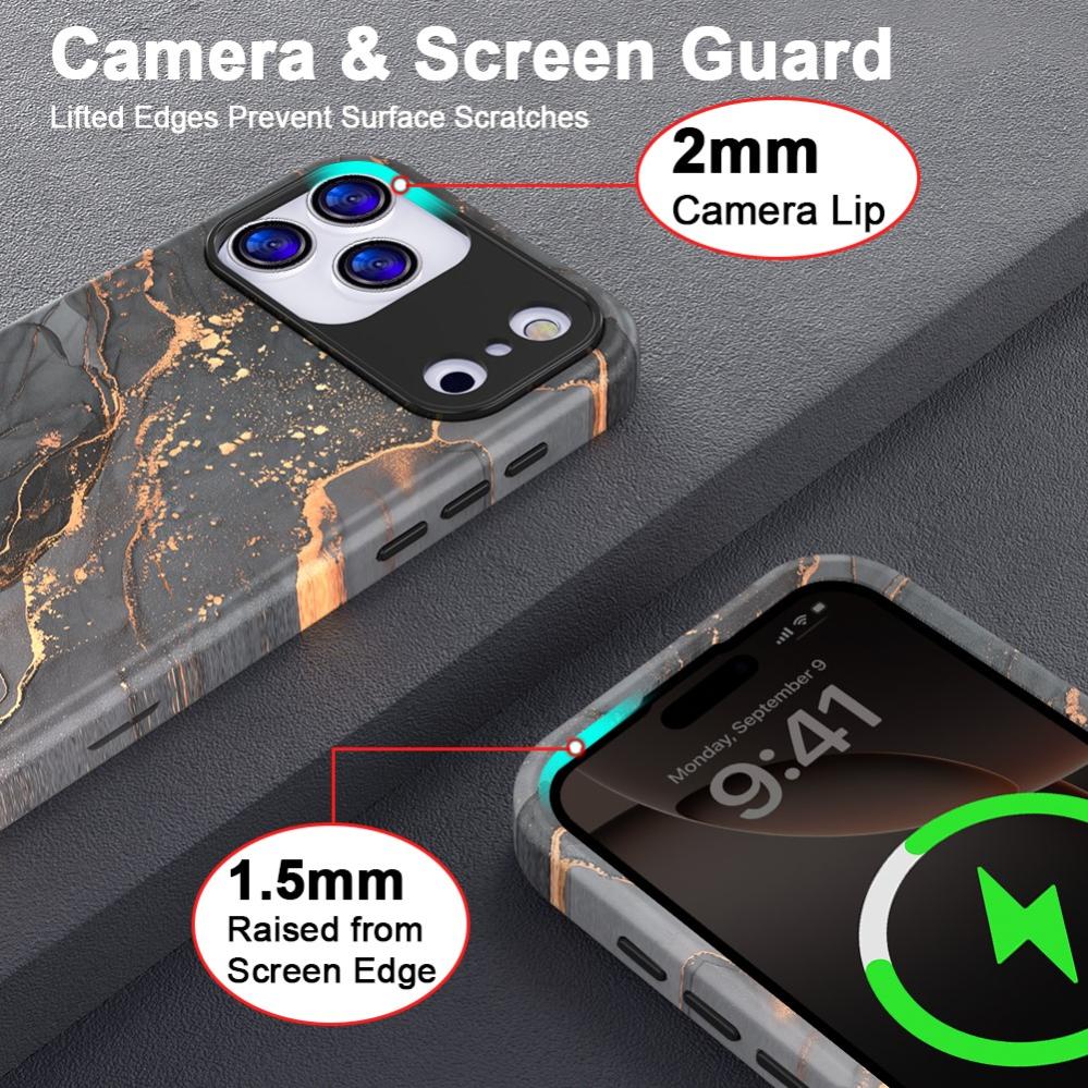 iPhone 17 Pro Max Skal Hybrid Med Marmor Tryck Grå / Guld