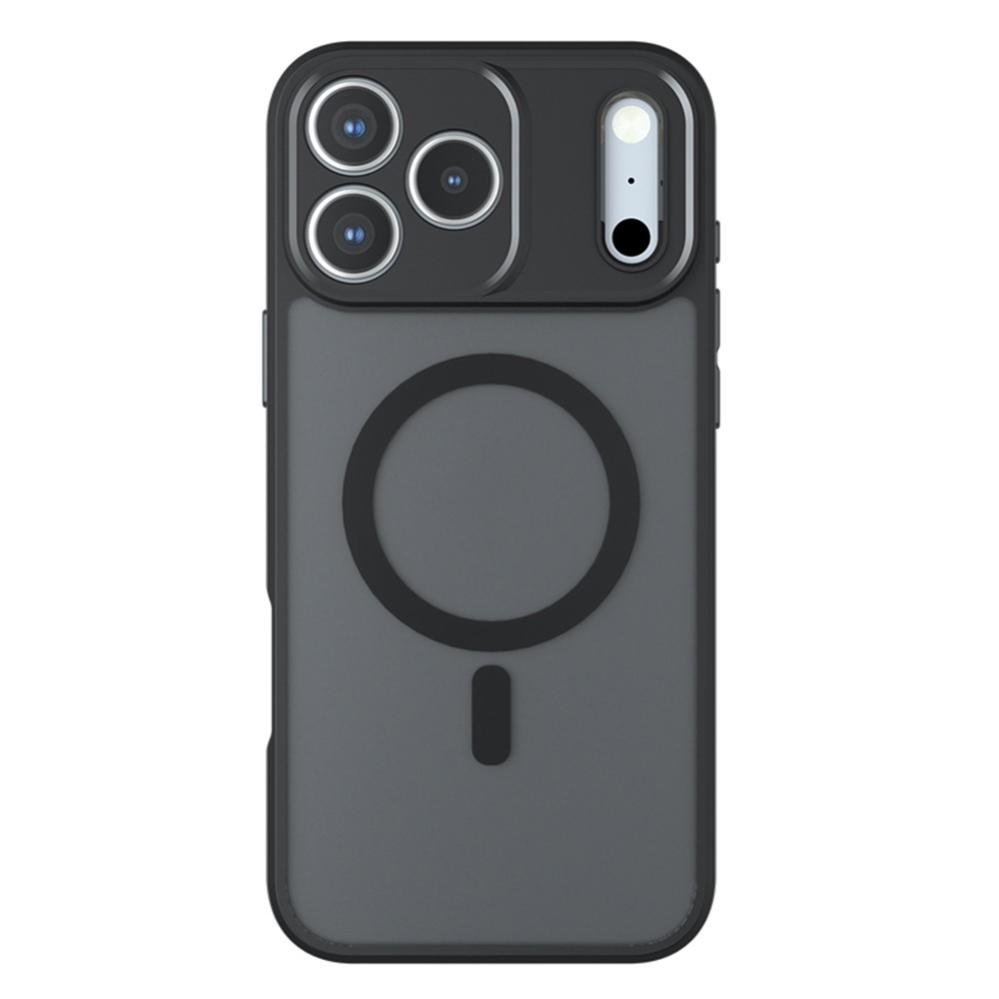 Den matta ytan motverkar fingeravtryck och den inbyggda magnetringen ger smidig kompatibilitet med MagSafe‑tillbehör, medan upphöjda kanter och stötdämpande hörn skyddar skärm och kamera.