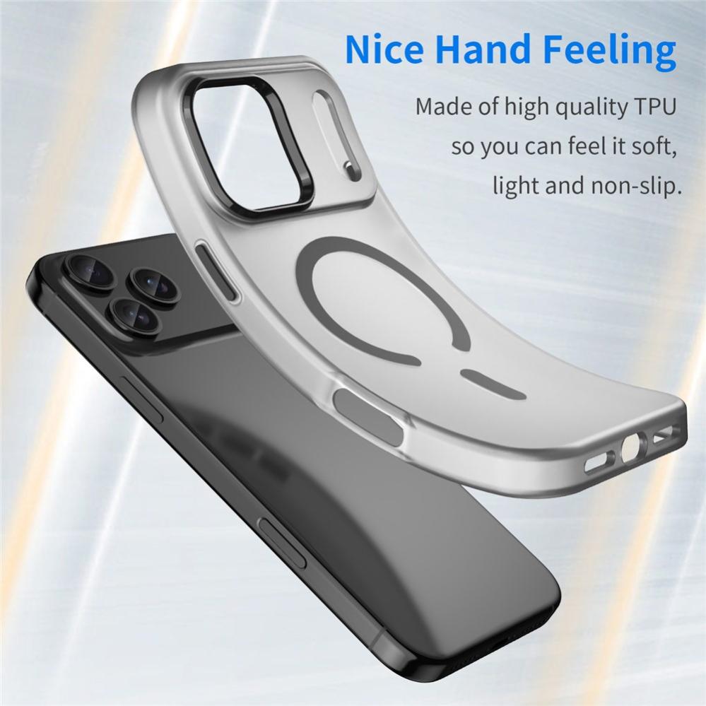Utformat för iPhone 17 Pro Max, med matt halvtransparent baksida som motstår fingeravtryck samt förhöjda kanter som skyddar skärm och kamera. Stöd för magnetisk trådlös laddning.