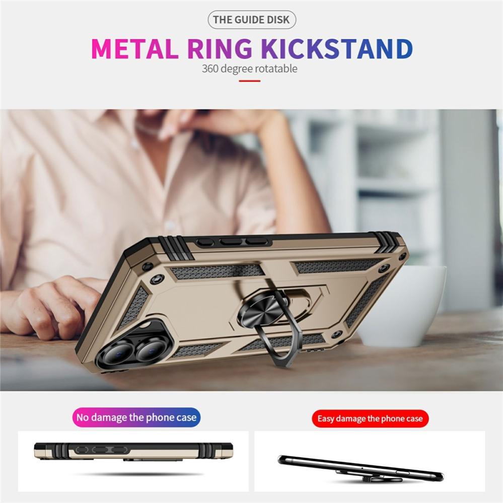 Den integrerade, 360° roterbara metallringen fungerar både som stativ och som grepp, och den inbyggda metallplattan gör skalet kompatibelt med magnetiska bilhållare. Precisa utskärningar och responsiva knappar ger smidig användning, samtidigt som skalet skyddar mot stötar, tapp och vardagligt slitage.