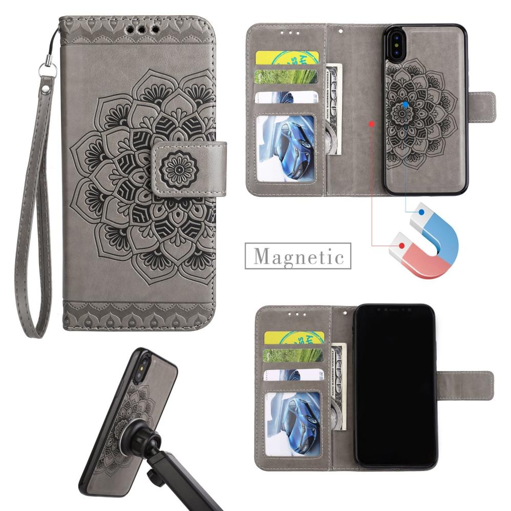 iPhone X/Xs - Plånboksfodral / Magnet Skal 2 in 1 - Grå