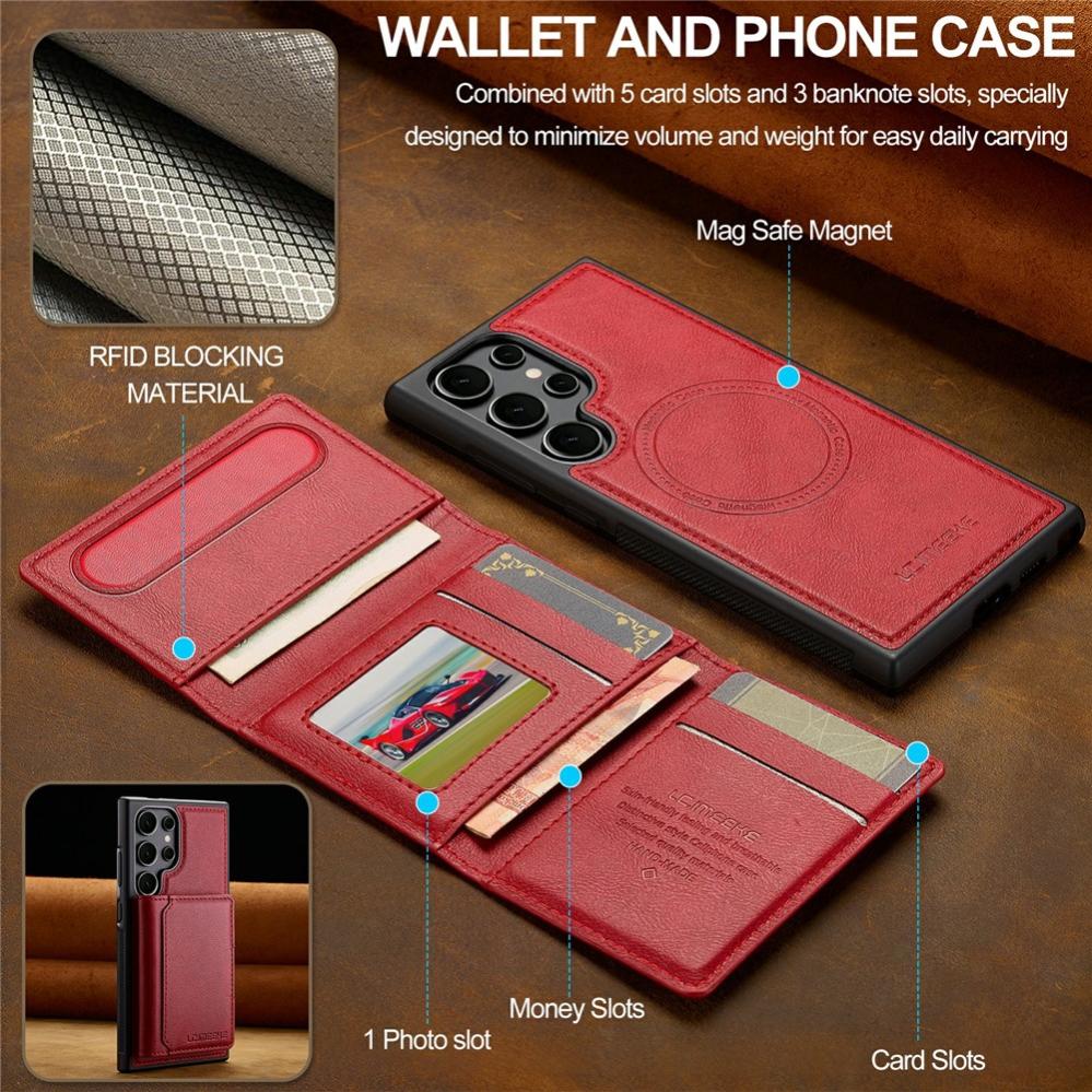 LC.IMEEKE Galaxy S26 Ultra Skal MagSafe Avtagbart Kortfack (Röd)