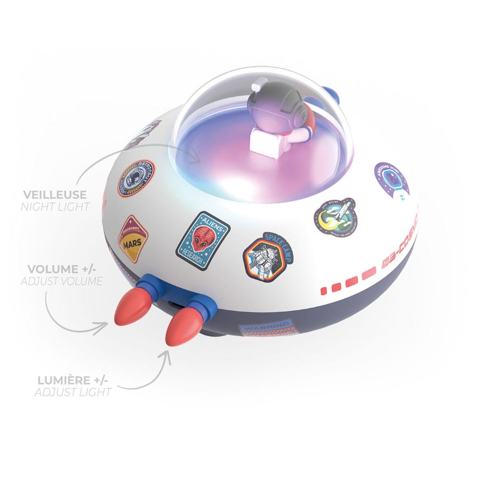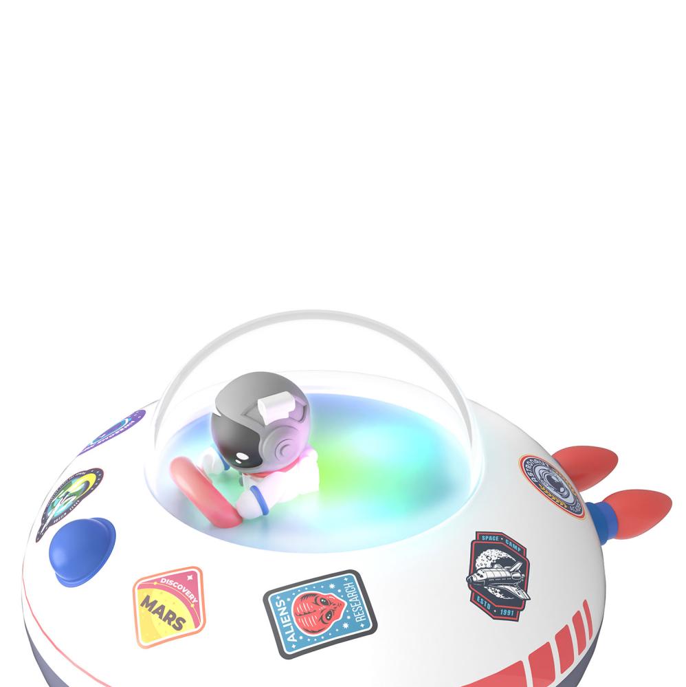 Upptäck Cosmo Bubbly, en Bluetooth-högtalare som kombinerar kraftfullt ljud med fängslande ljuseffekter. Dess futuristiska design, inspirerad av rymdskepp, gör den till ett blickfång i alla miljöer. Med upp till 4 timmars lyssningstid kan du njuta av dina favoritlåtar utan avbrott. Högtalaren fungerar också som en nattlampa med tre olika ljuslägen för att passa ditt humör eller din miljö.