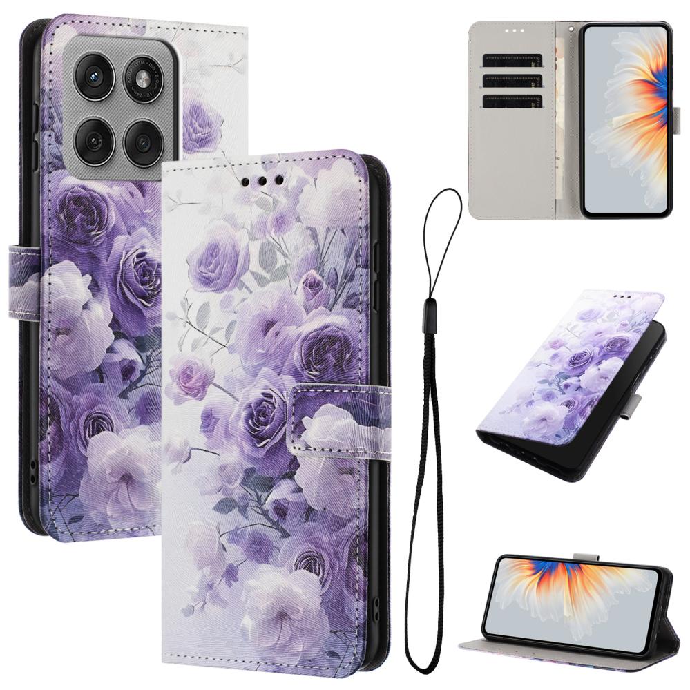 Motorola Edge 60 Pro Fodral Med Tryck Lila Rosor