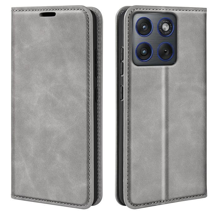 Motorola Edge 70 Fodral Flip Skin Touch Läder Grå
