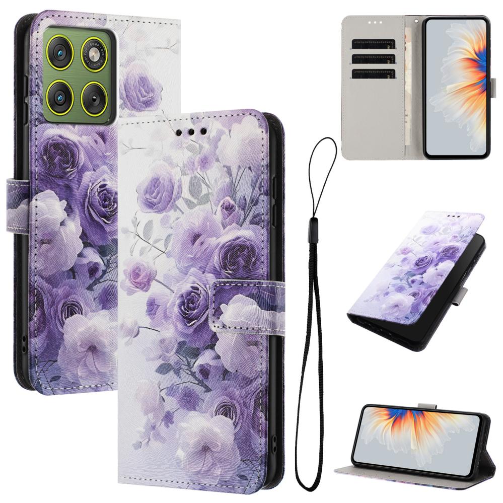 Motorola Edge 70 Fodral Med Tryck Lila Rosor