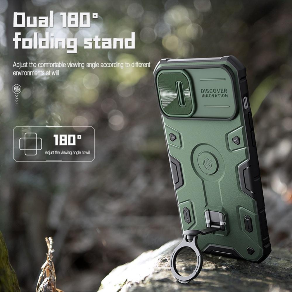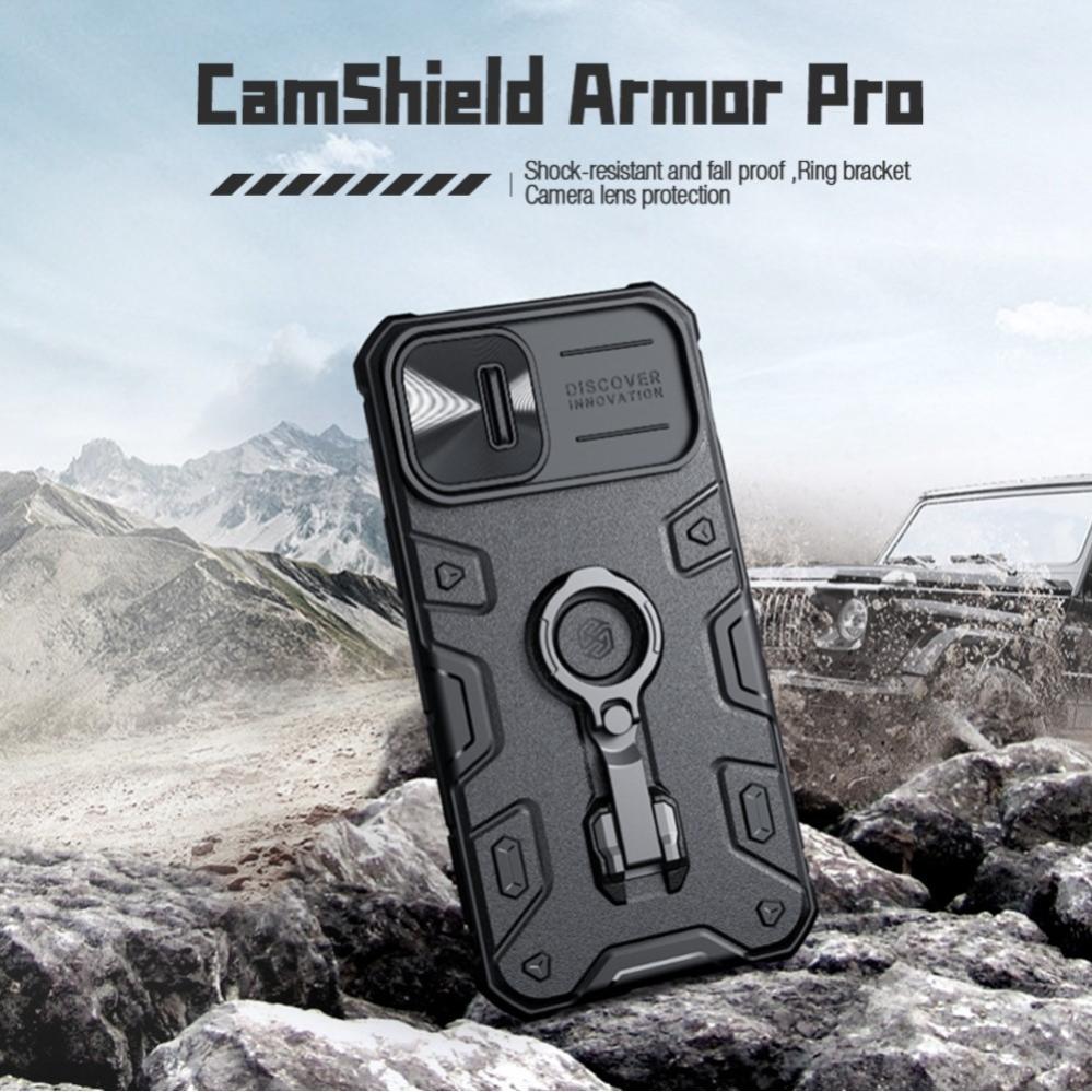 NILLKIN CamShield Armor Pro för iPhone 14 / iPhone 13 är gjort för utomhussport. Tillverkad av miljövänligt TPU och hårdplast material med slagtåligt luftutrymme i alla fyra hörn som förser din smartphone med ett pålitligt skydd.