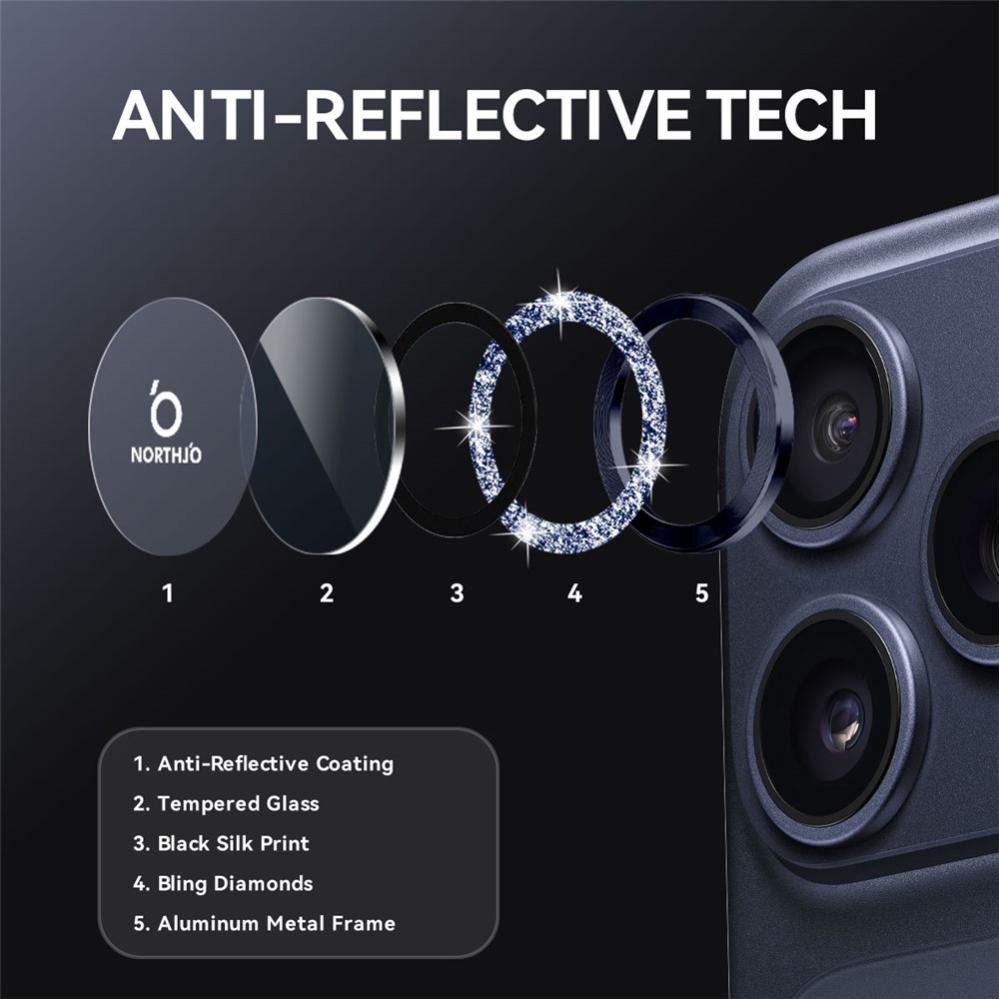 NORTHJO iPhone 17 Pro/17 Pro Max Linsskydd Glitter Blå
