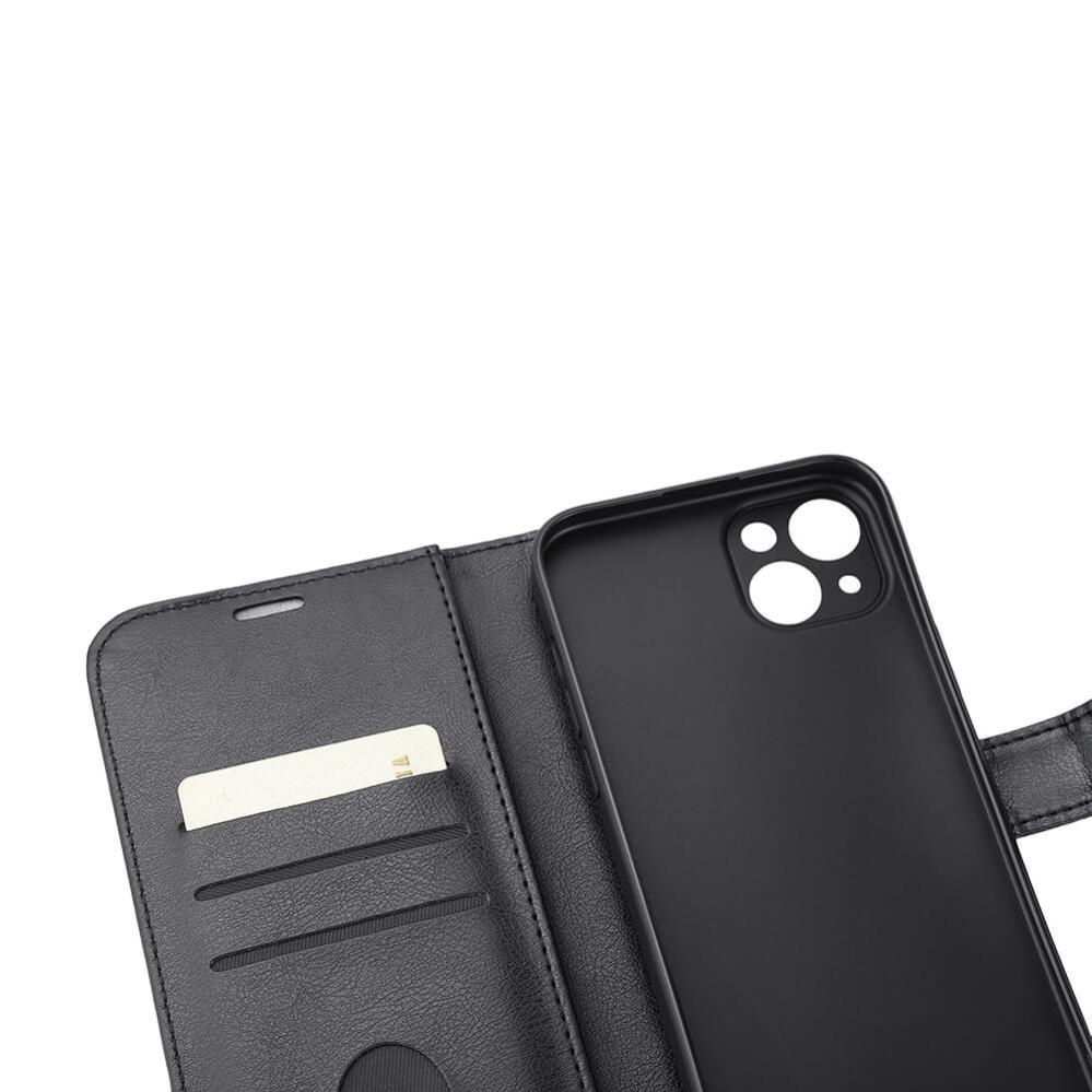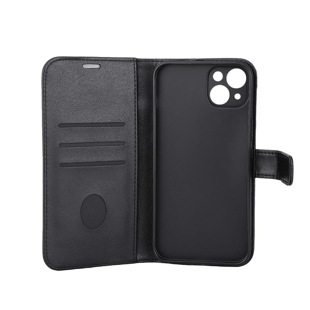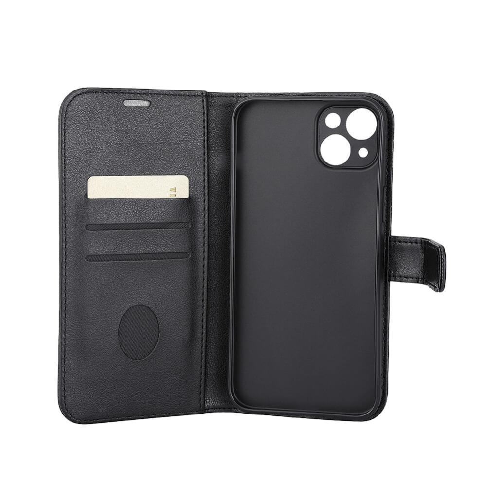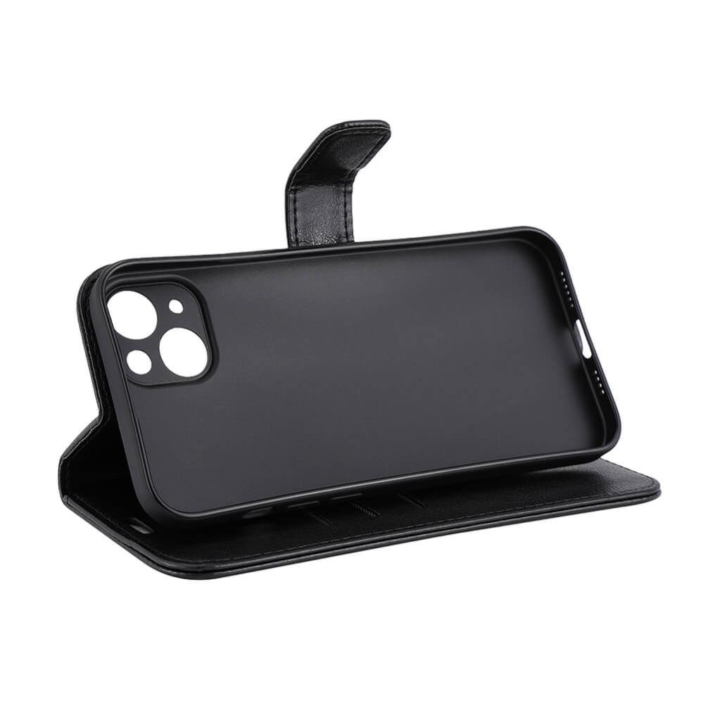 Strålningsskyddande mobilfodral i konstläder, med tre kortfack, ställfunktion, RFID skydd samt stöder trådlös laddning via Magsafe.
