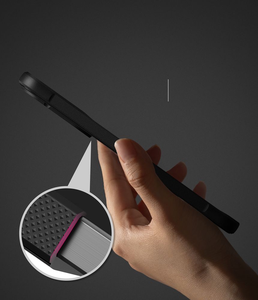 Detta Onyx-skal från Ringke har militärklassad (Military Grade) stöttålighet, höjda kanter runt skärm och kamera samt genomtänkta detaljer som integrerade knappar och precisa utskärningar för portar. De sträva sidorna ger trygg hantering och särskilda fästpunkter gör det enkelt att ansluta en rem eller ett litet tillbehör.