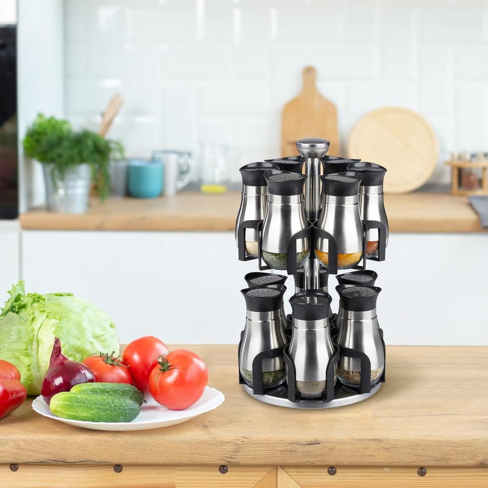 Kryddställ med 12 Glasburkar – Roterande 360°