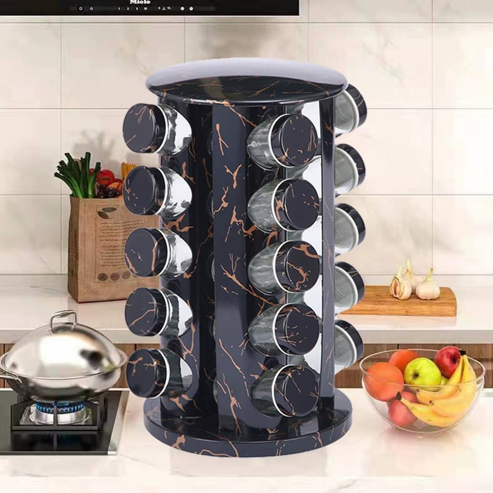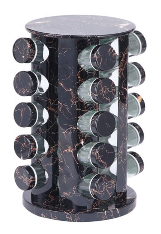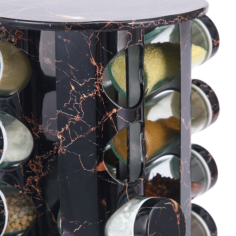 Roterande kryddställ med 20 glasburkar - Svart Marmor (Svart Marmor)