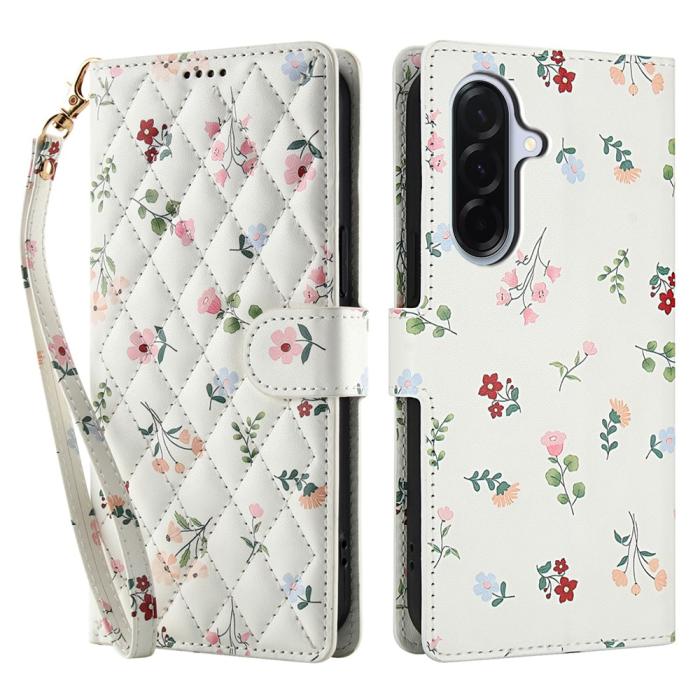 Samsung Galaxy A37/A36/A56 Fodral Rhombus Läder Blommor Vit