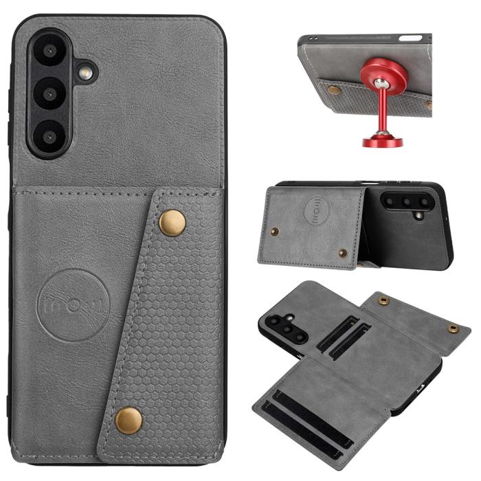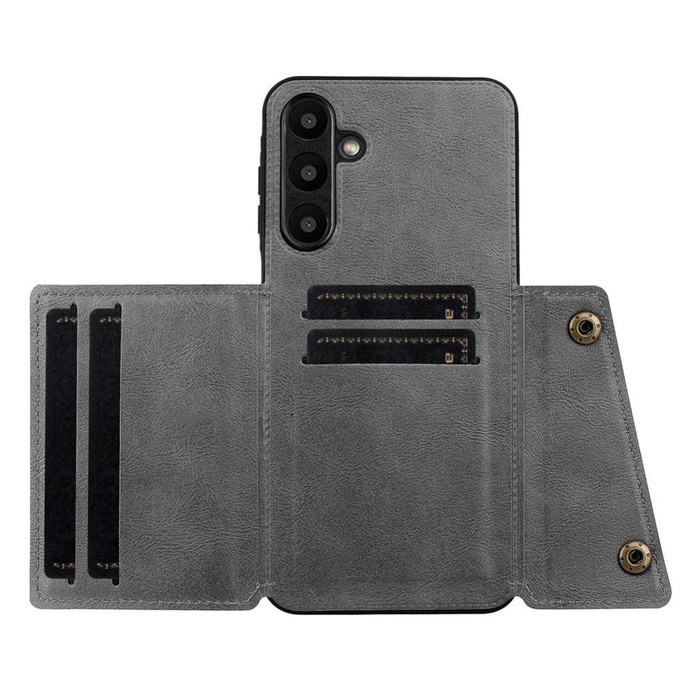 Samsung Galaxy A57 5G Skal Läder Med Kortfack Och Magnet Grå