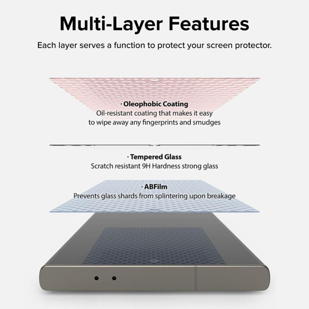 - Kombinerar en oleofobisk beläggning, 9H hårdhet härdat glas och AB-film för överlägsen repmotstånd och för att förhindra krossning.