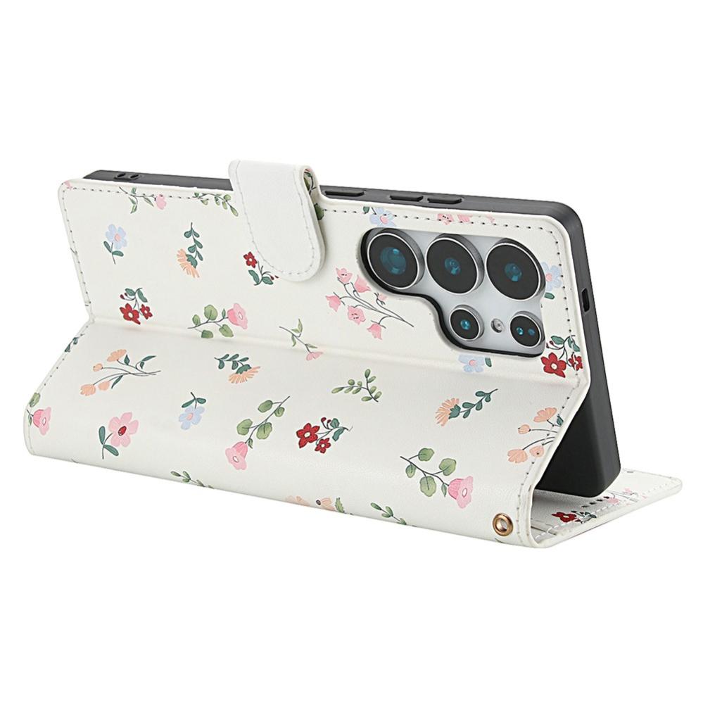 Samsung Galaxy S26 Ultra Fodral Rhombus Läder Blommor Vit