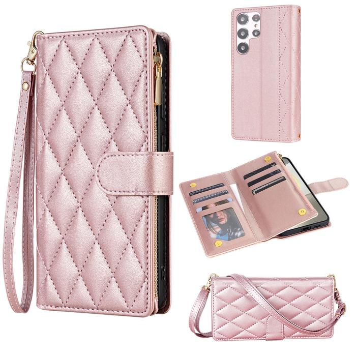 Samsung Galaxy S26 Ultra Fodral Rhombus Läder Roséguld
