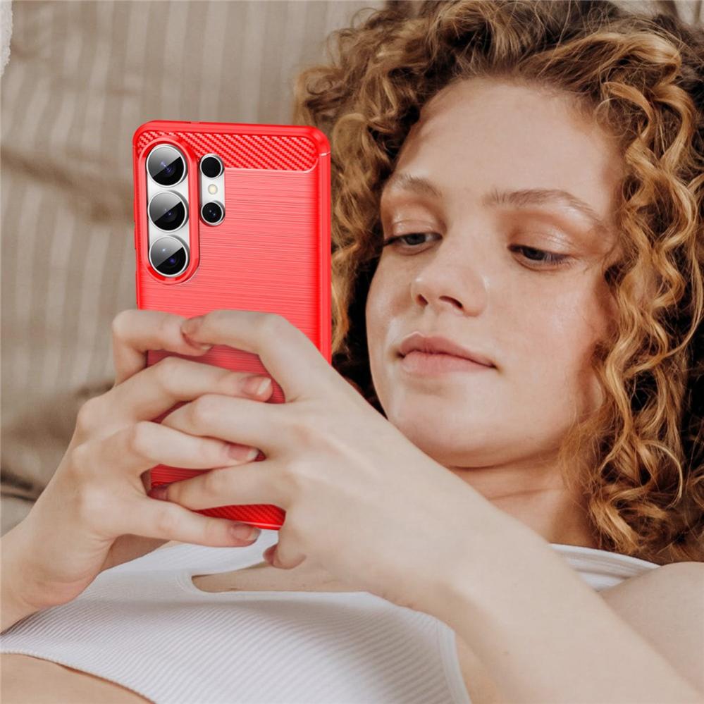Samsung Galaxy S26 Ultra Skal Borstad Stål Textur Röd
