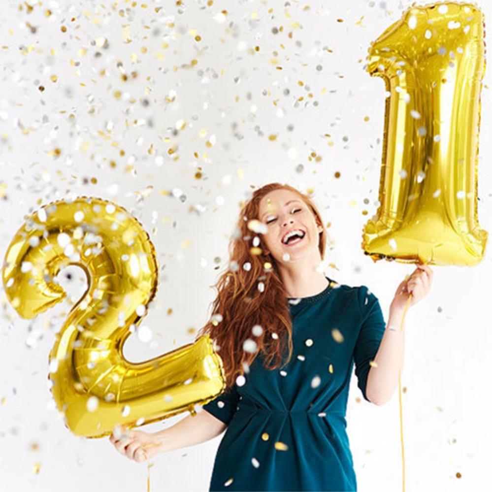 Guldfärgad sifferballong för tydliga sifferdekorationer vid små och stora tillställningar. Den är gjord av förtjockad aluminiumfolie som står emot tryck och håller formen längre.