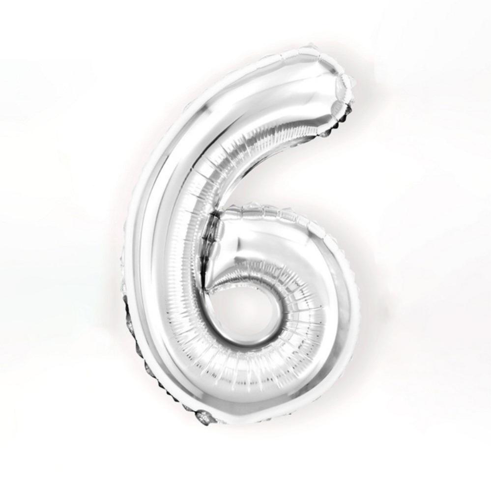 Handla denna produkt Sifferballong Nummer 6 40 cm Silver